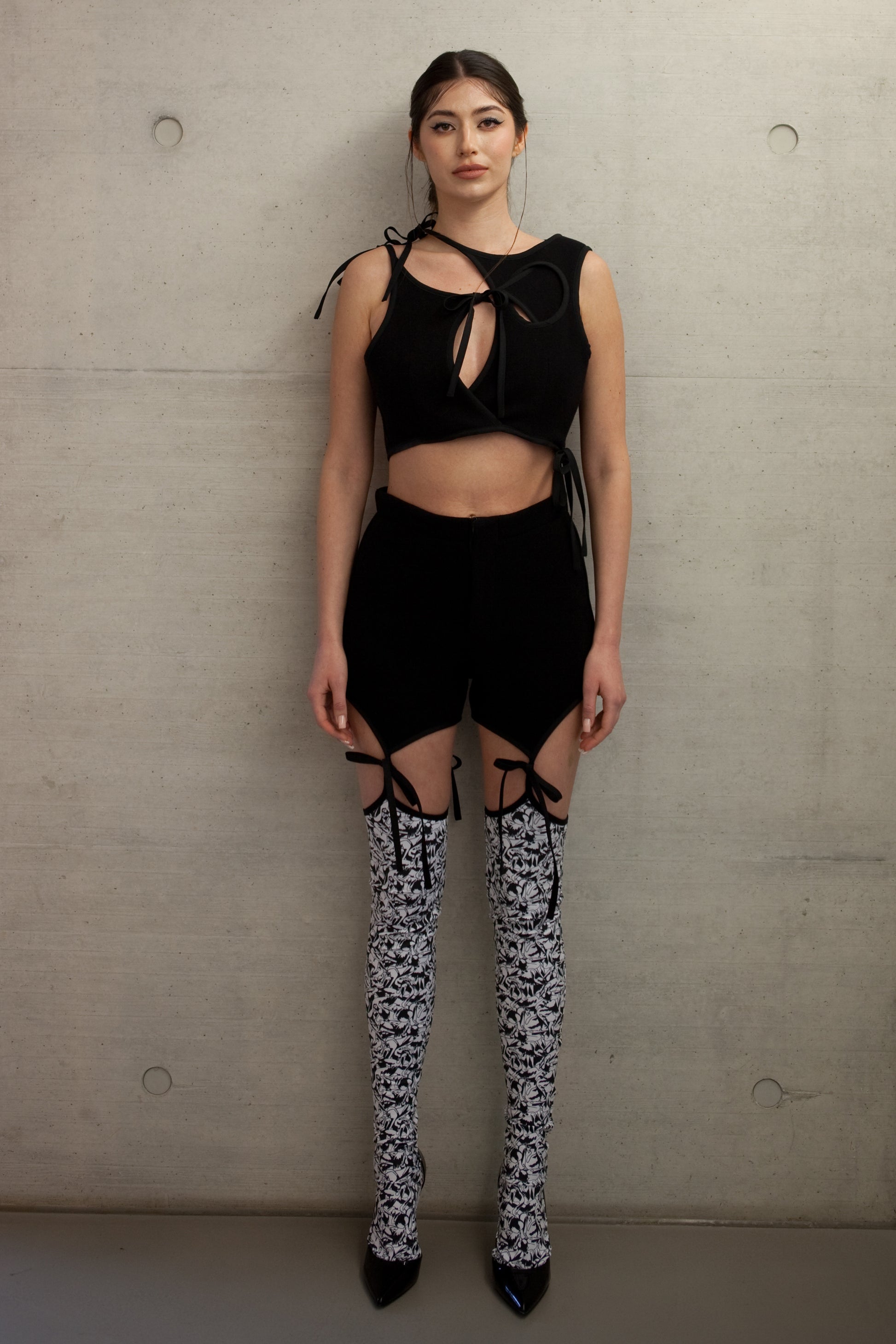 leg allow for the attachment of our stockings, offering versatility and styling.